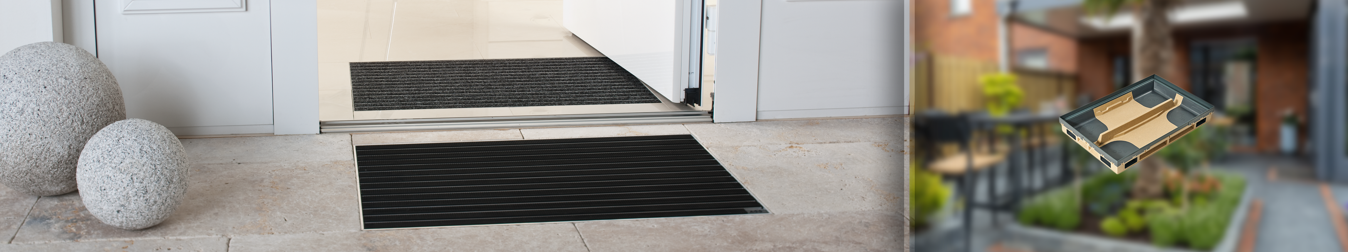 Ga je nieuwe bestrating rondom je woning aanleggen? Dan is dat hét moment om te kiezen voor het 2-staps entreesysteem van ACO. Zorg ervoor dat je schoenen eerst schoon en daarna kurkdroog worden, dat is de oplossing! Buiten plaats je, geïntegreerd in de bestrating, de revolutionaire ingebouwde ACO schoonloper. Echt een deurmat 2.0. Hij neemt alle irritatie weg die een losse, doorweekte rondslingerende deurmat veroorzaakt! En binnen plaats je de kwalitatief hoogwaardige ACO droogloper.